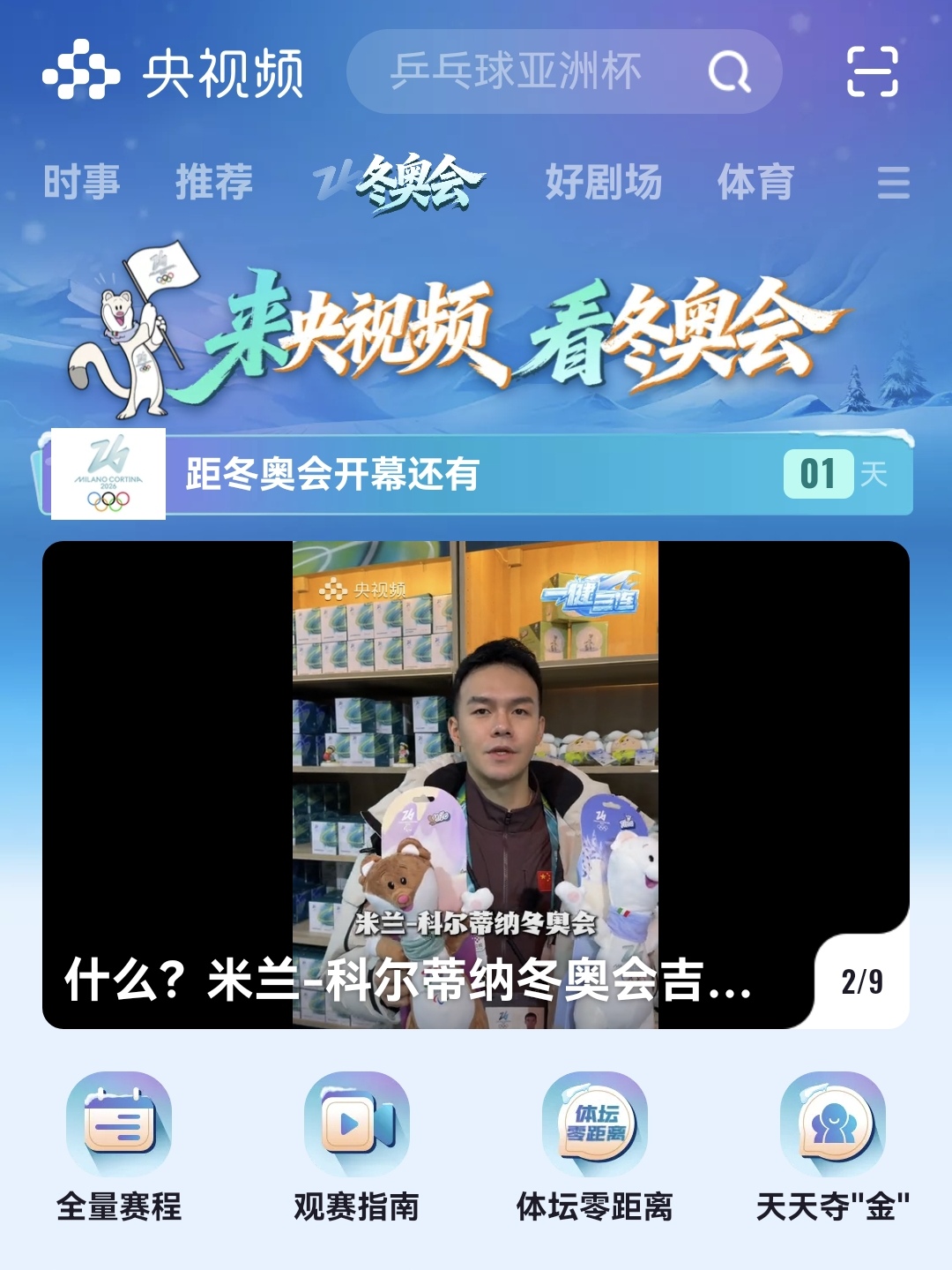 开幕式:中欧时间2月6日(周五)晚8点,北京时间2月7日(周六)凌晨3点,于米兰圣西罗奥林匹克体育场盛大开幕。